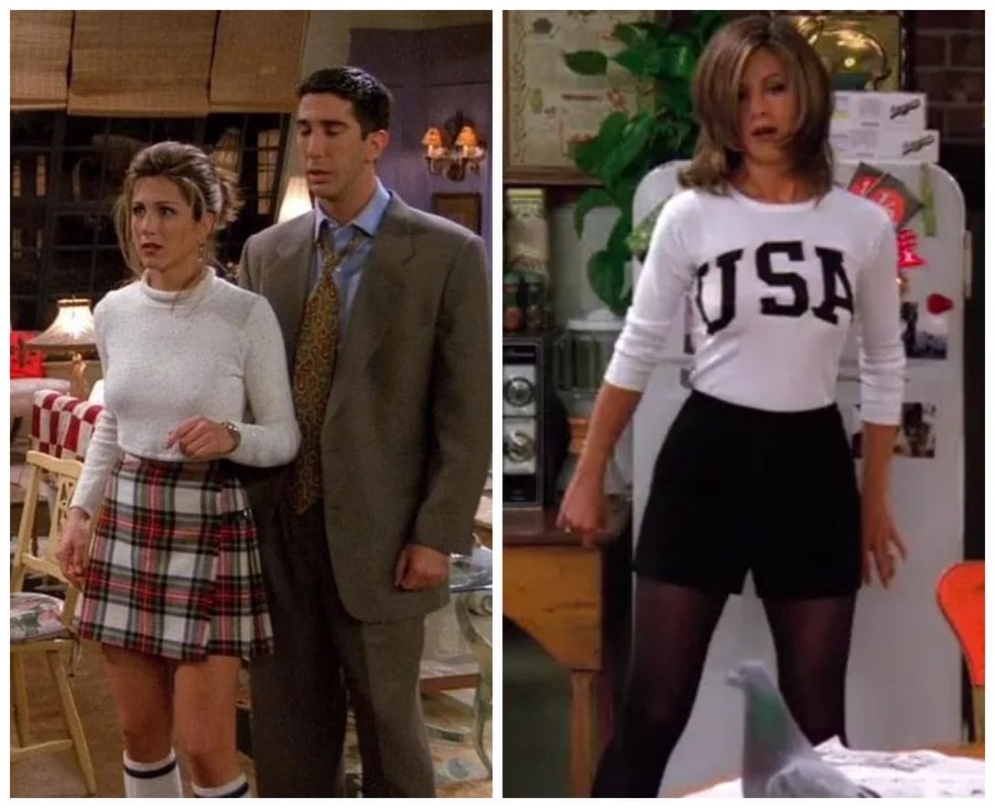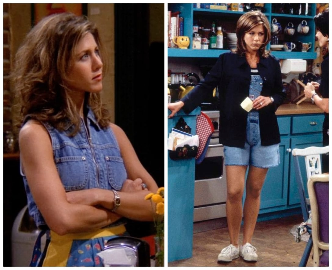 У перших сезонах “Друзів” Рейчел часто обирала комбінезони, картаті принти, а також рідко носила підбори. Її культові образи, поєднання джинсів mom fit з базовими футболками, залишаються актуальними й досі. Такі аутфіти чудово підійдуть для студентських днів або відпочинку з друзями.