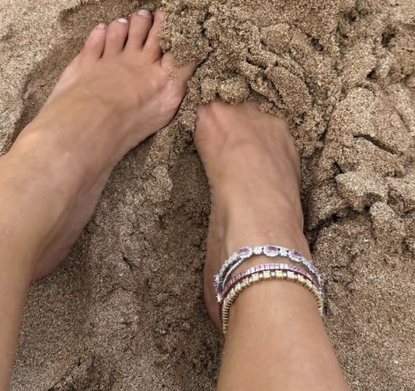 Кім Кардаш’ян знову підтвердила свій статус ікони стилю, вирушивши в незабутню подорож на Мауї разом з дітьми та сестрою Хлої. Цього разу увагу інтернет-користувачів привернули не лише її яскраві пляжні образи, а й розкішні прикраси, які сяяли на її босих ногах. Кім вирішила підкреслити свою елегантність чотирма розкішними діамантовими браслетами, які однозначно випромінювали тепло і стиль.