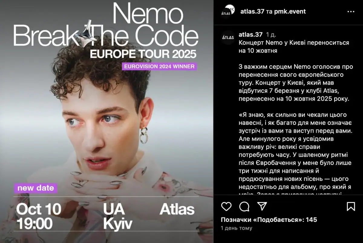 Швейцарський музичний колектив Nemo, який став переможцем “Євробачення-2024”, нарешті з радістю повідомляє про концерт в Україні. Після того, як раніше була інформація про можливе скасування виступу, команда вирішила не розчаровувати українських фанатів і оголосила нову дату шоу.